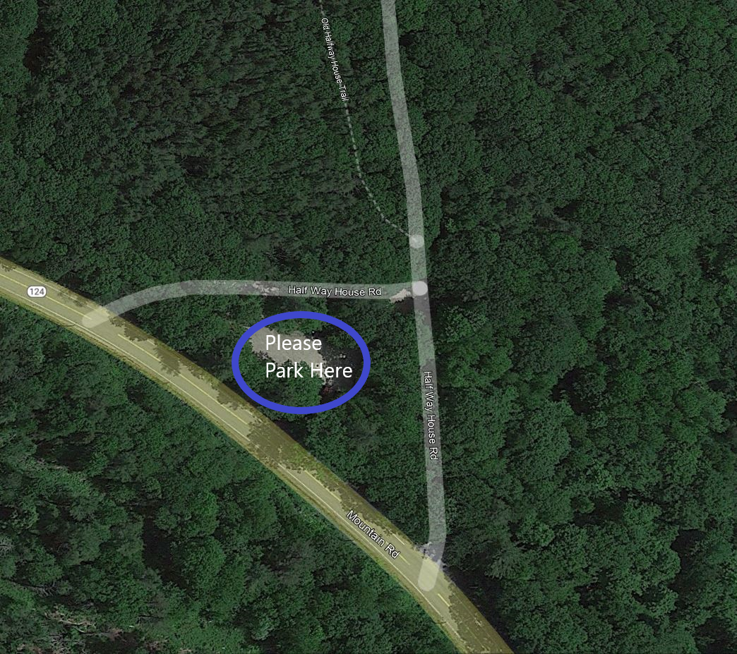 are in motion. To access Route 124, logging trucks are utilizing a brief stretch of the old toll road. Visitors are advised to park in the assigned lot until trucking operations conclude.